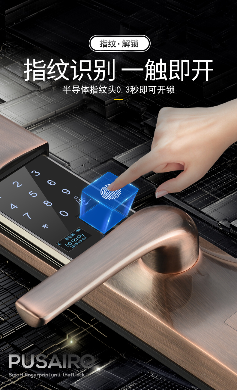 青海滑盖指纹锁家用防盗门